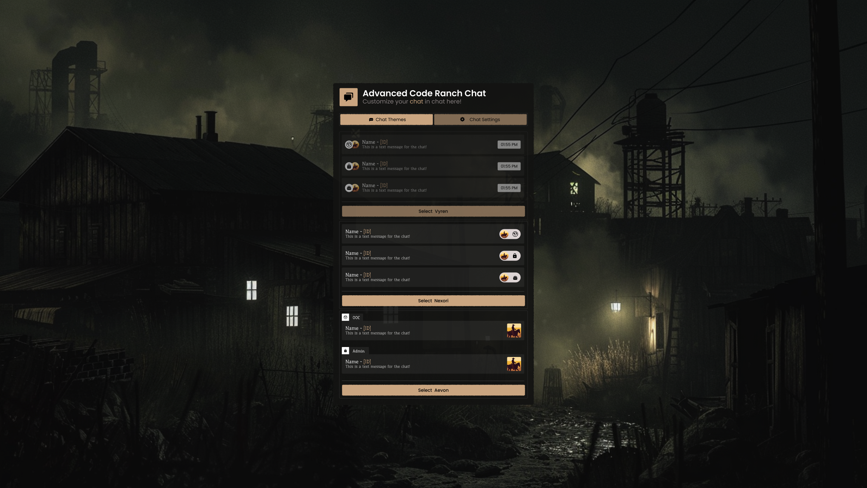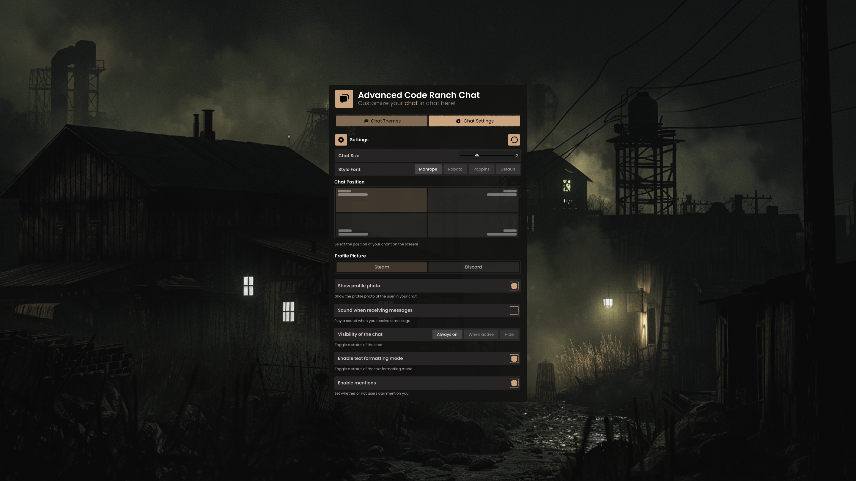- Live chat settings panel — open with LALT and tweak everything in real time